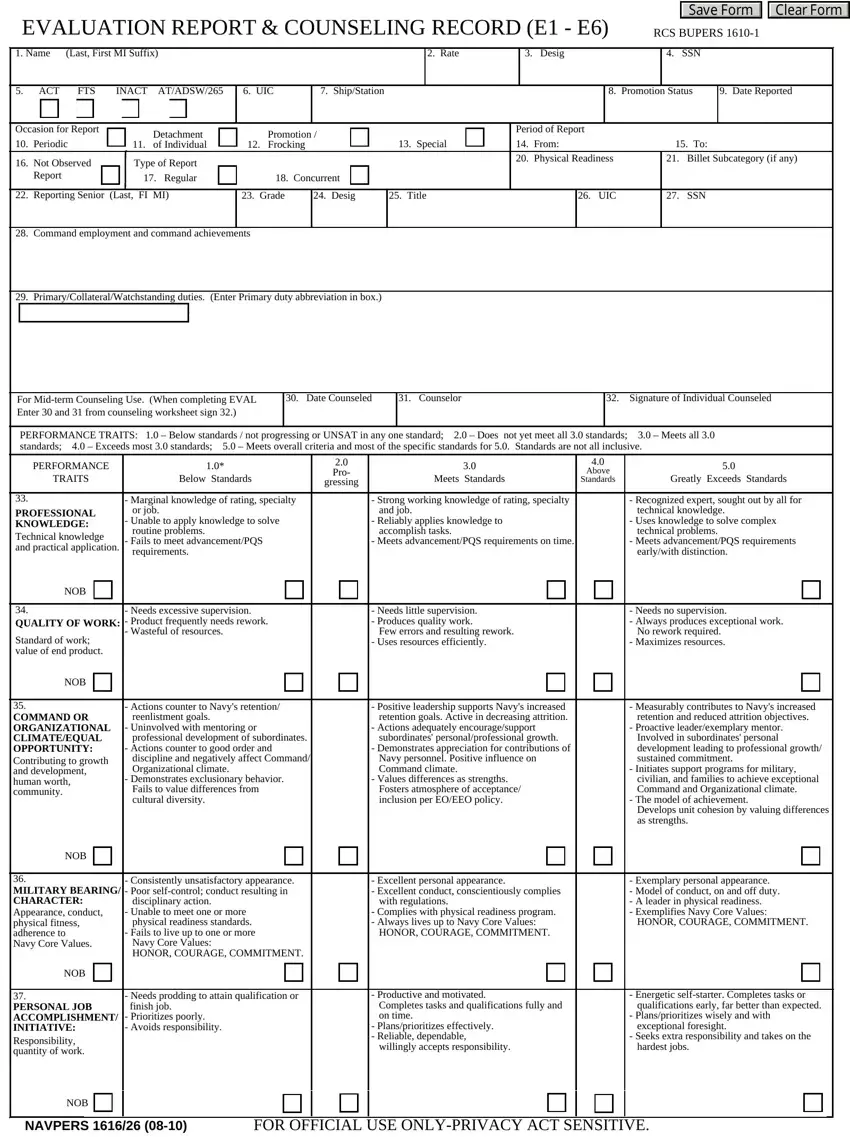 A comprehensive Navy evaluation form is meticulously designed to capture a 360-degree view of a Sailor’s performance and potential. It typically goes beyond mere checklists, delving into narrative assessments that provide context and specific examples of achievements, challenges, and areas for improvement. These forms are vital tools for career counseling, promotions, and even determining eligibility for specialized training or assignments, making their accuracy and thoroughness paramount.