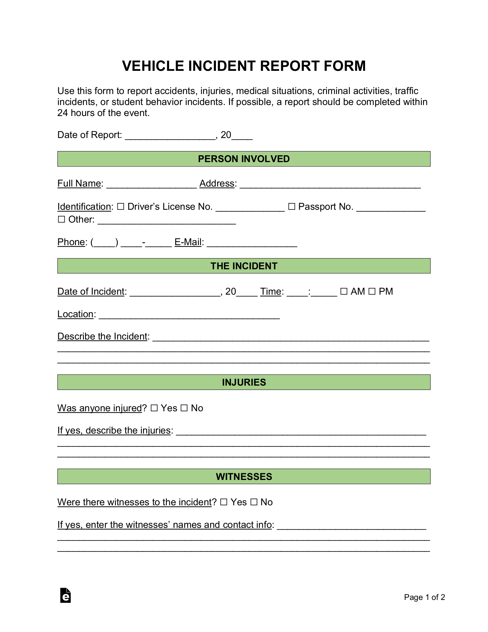 • Witness names and contact information