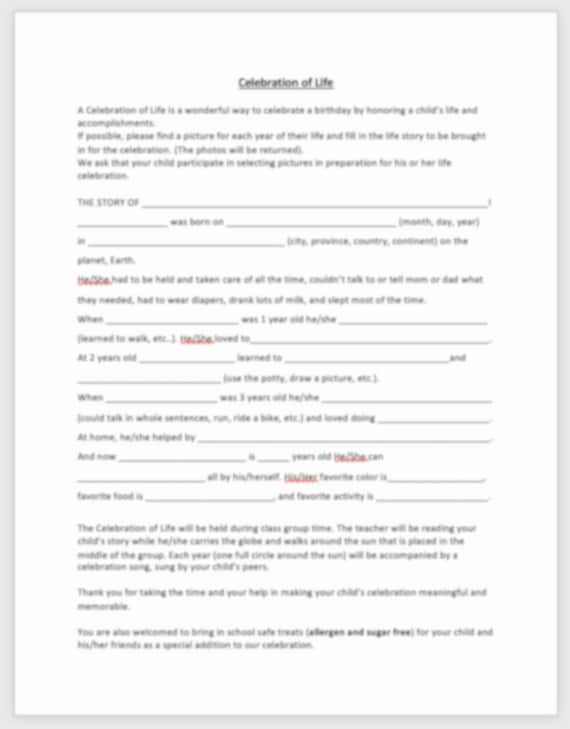 Crafting Your Celebration of Life Montessori Form Template