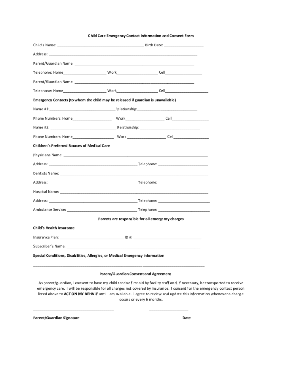 Beyond immediate safety, having a comprehensive and updated information system helps your facility meet regulatory compliance. Many licensing bodies require providers to have current emergency contact details, medical information, and authorized pick-up lists for all enrolled children. A template ensures consistency in data collection, making audits simpler and demonstrating your commitment to high standards of care. It empowers your staff with immediate access to critical details, enabling quick and informed decisions when every second counts.