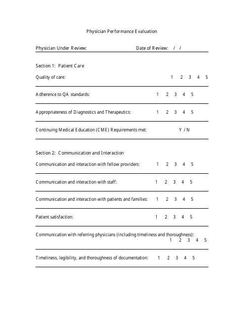 Doctor Performance Evaluation Form Template