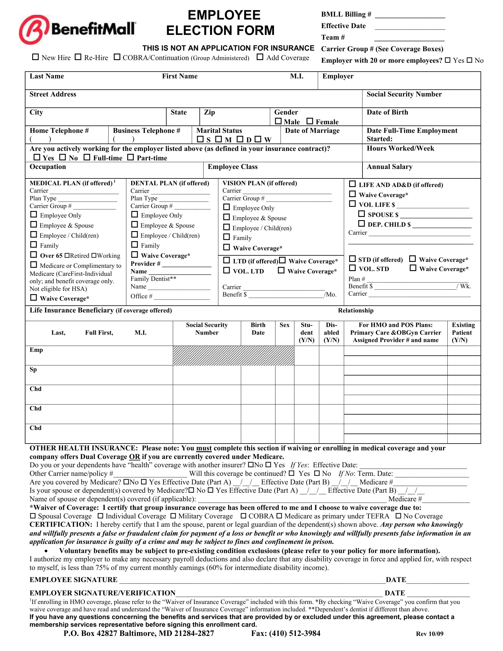- Waiver Sections: An option for employees to waive certain benefits, along with acknowledgement of understanding the implications of waiving coverage.