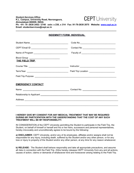 Field Trip Indemnity Form Template