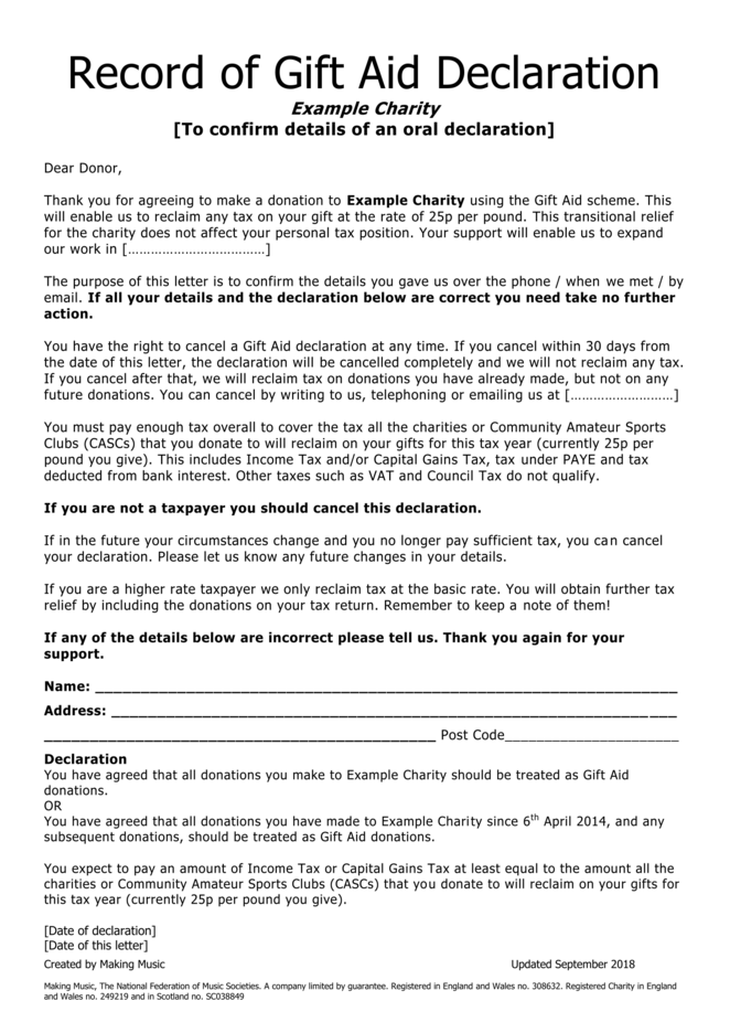 gift aid claim form template