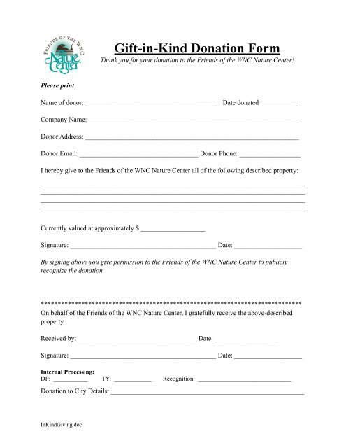 - **Educate Donors:** Provide a brief explanation of what “gift in kind” means and why the form is necessary.