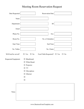 - Specific Requirements: Audiovisual needs, table/chair setup, catering preferences, access to kitchen facilities, parking needs, or any other special requests.