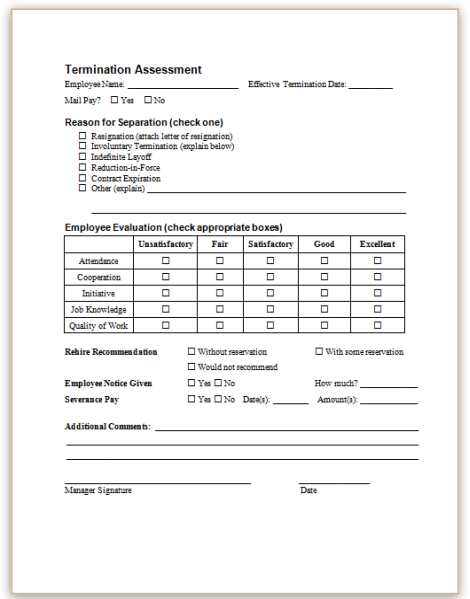 - Return of Company Property: Checklist for items to be returned (laptops, badges, keys, etc.).