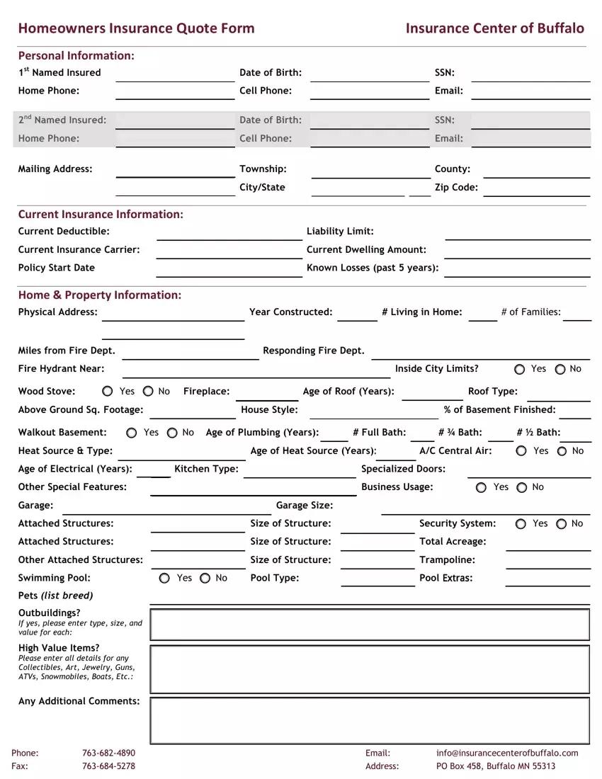 Understanding the elements of an effective home insurance quote form template can significantly streamline the process. Whether you’re an insurance professional looking to optimize your intake process or a homeowner curious about what details are needed, a comprehensive and intuitive form is key. It ensures all relevant data is collected efficiently, leading to faster and more precise quotes for potential policyholders.