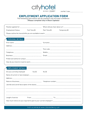 hotel employment application form template
