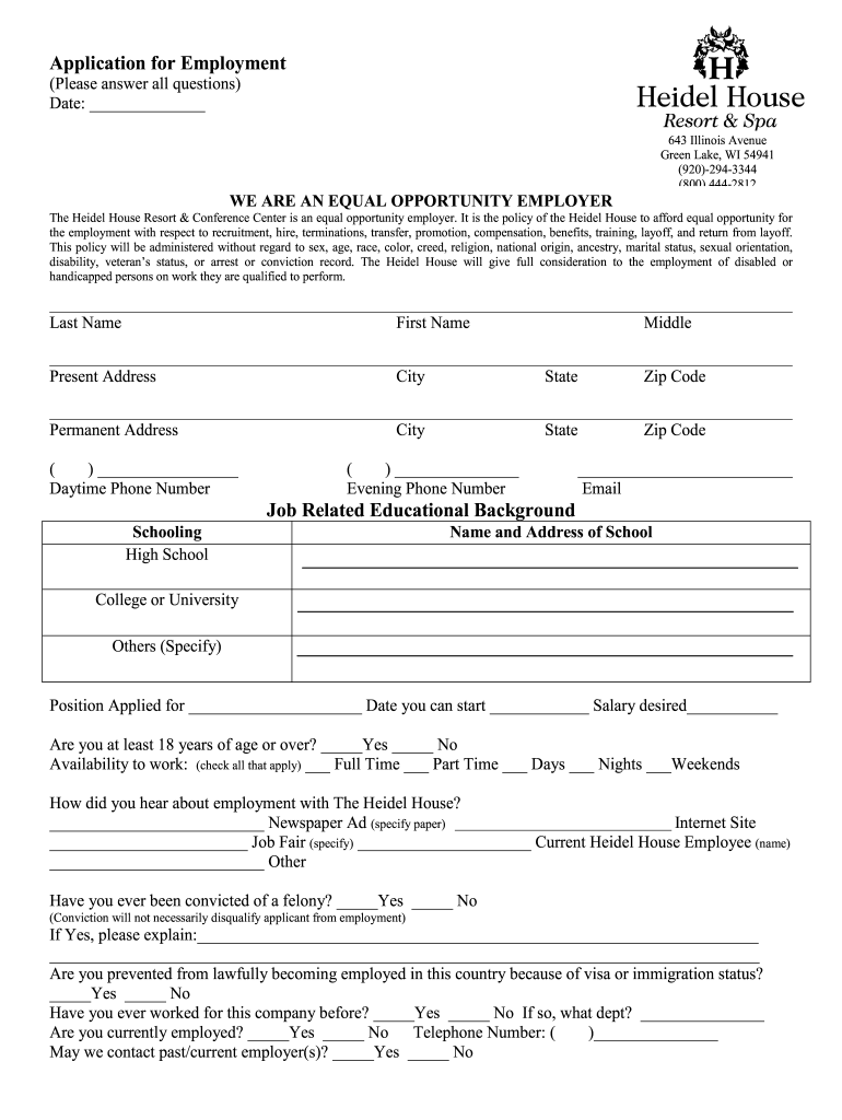 Housekeeper Job Application Form Template