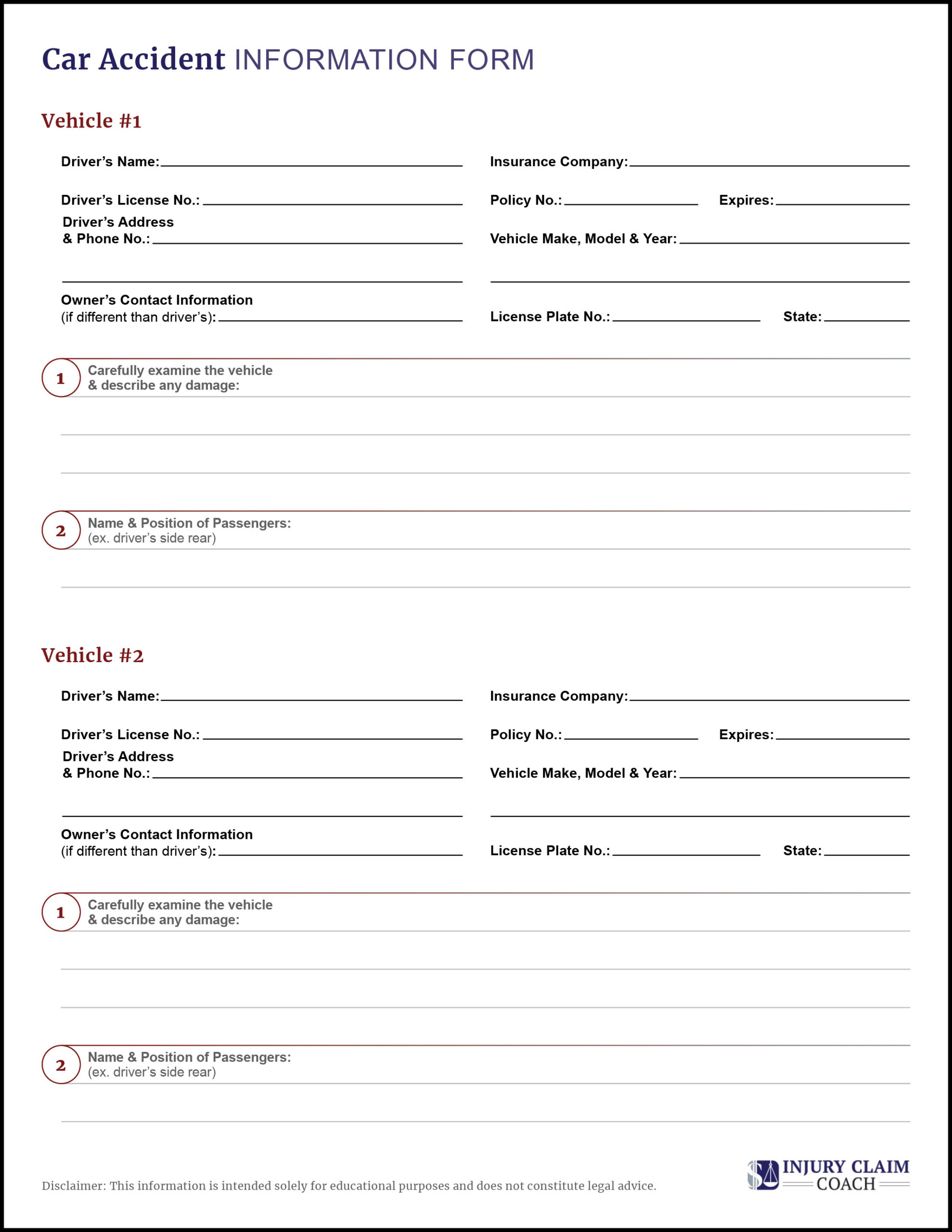 Start with the basics: your personal details, vehicle information, and insurance policy number. You’ll also need to gather the same information for any other drivers involved, including their names, contact numbers, driver’s license numbers, vehicle registration details, and insurance policy information. This initial data collection forms the foundation of your claim and helps identify all parties involved from the outset.