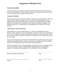 Patient Assignment of Benefits Form Template