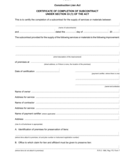 Service Completion Certificate Form Template