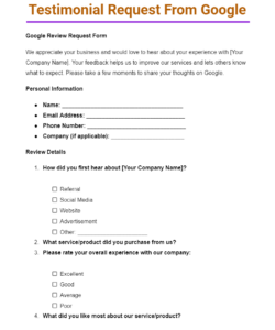 Service Testimonial Request Form Template