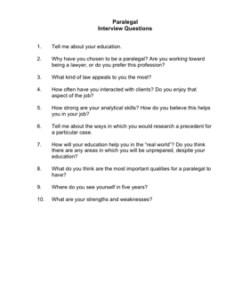 Paralegal Employee Interview Form Template