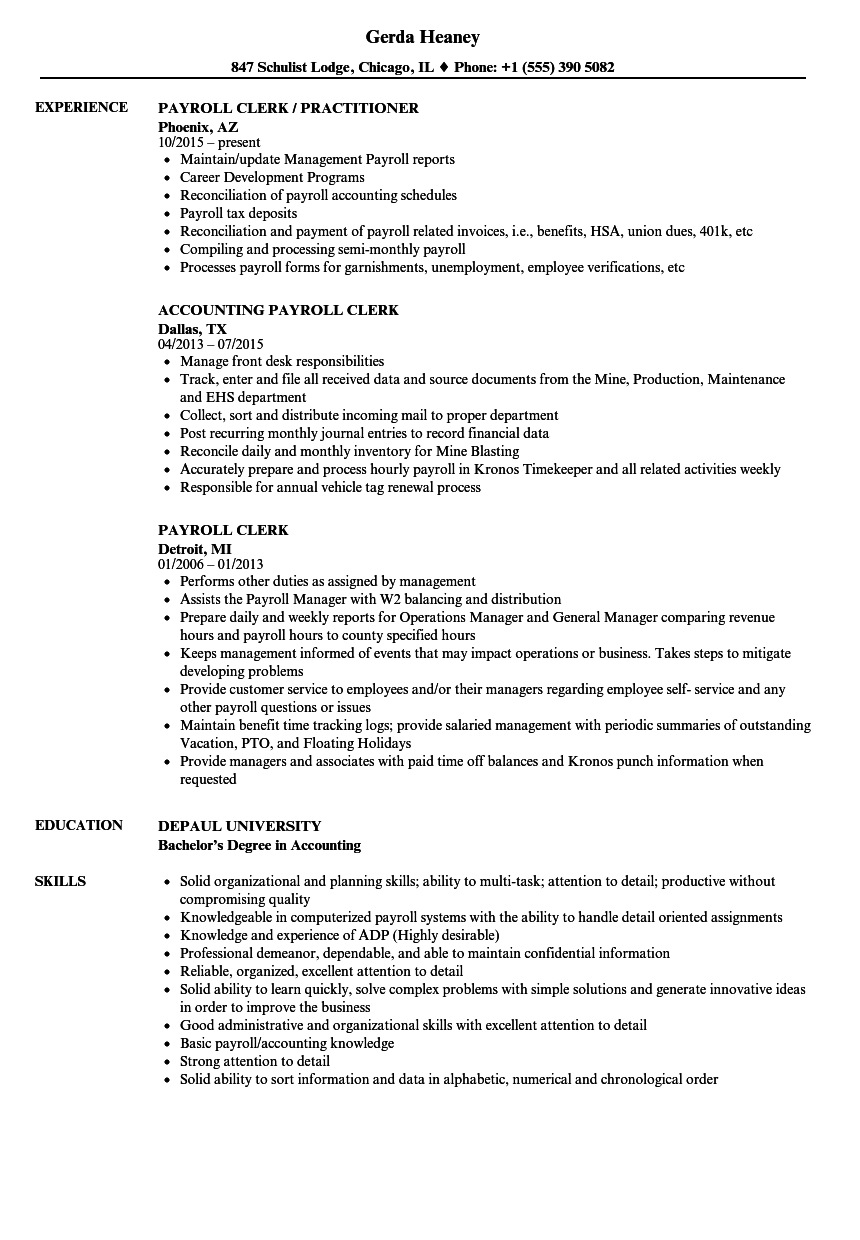 - Employment History: A chronological list of previous jobs, including dates of employment, company names, job titles, and a brief description of duties, particularly those related to payroll.