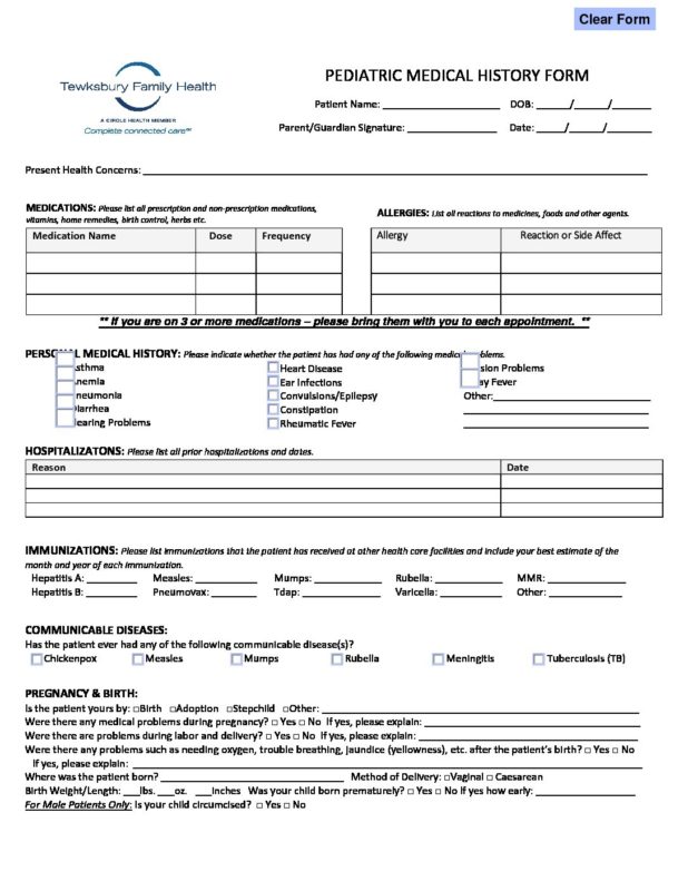 A well-crafted and diligently maintained medical history form serves as a vital record, ensuring continuity of care as a child grows and transitions through different stages of health. It acts as a single source of truth, facilitating communication between parents, general practitioners, and specialists, and ultimately contributing to more accurate diagnoses and effective treatment plans. This foundational document empowers healthcare providers to make informed decisions that are tailored to each child’s specific needs, leading to better health outcomes.