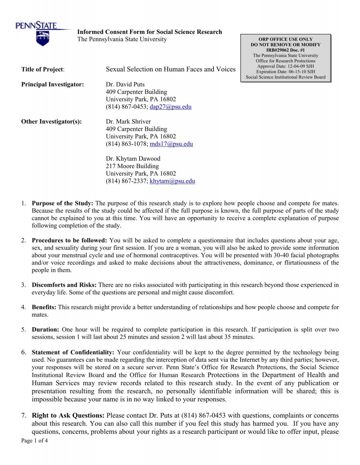 Penn State IRB Consent Form Template